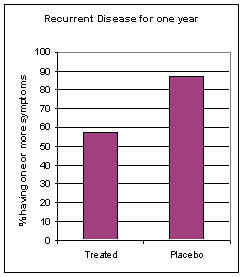 After one year of observation, the AuRx therapy was found to completely block recurrent disease in 43.5% of the treated patients treated while only 13% of the placebo group were free of recurrences. 61% of the treated patients had 2 or less recurrences where they had experienced an average of 8.5 recurrences the previous year. The number of recurrent episodes relative to previous year was reduced 3 fold (P<0.001).